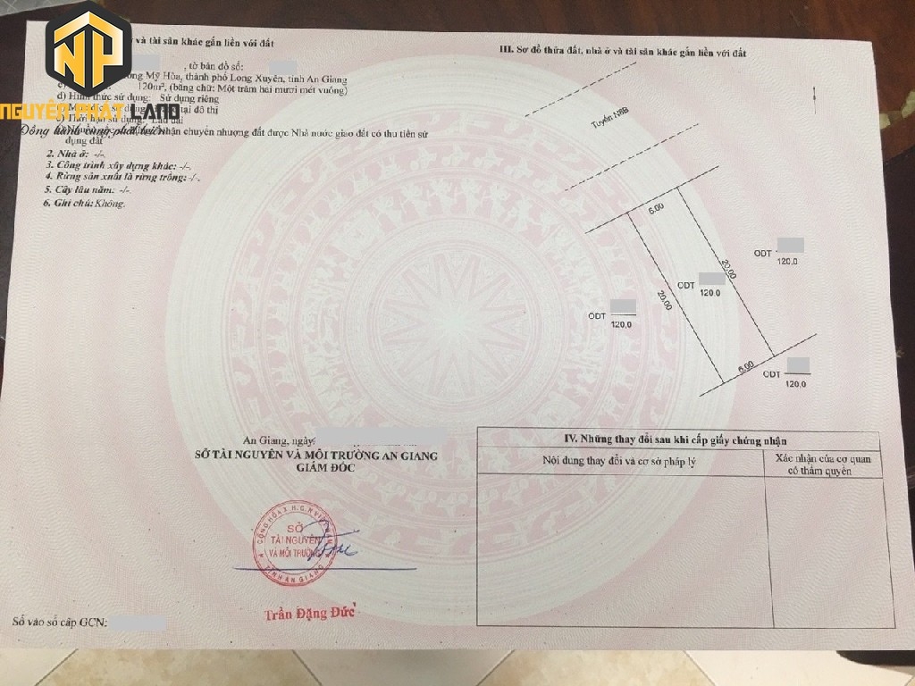 * Diện tích: 12 x 20 = 120 m2 ODT; Hướng: Tây Bắc