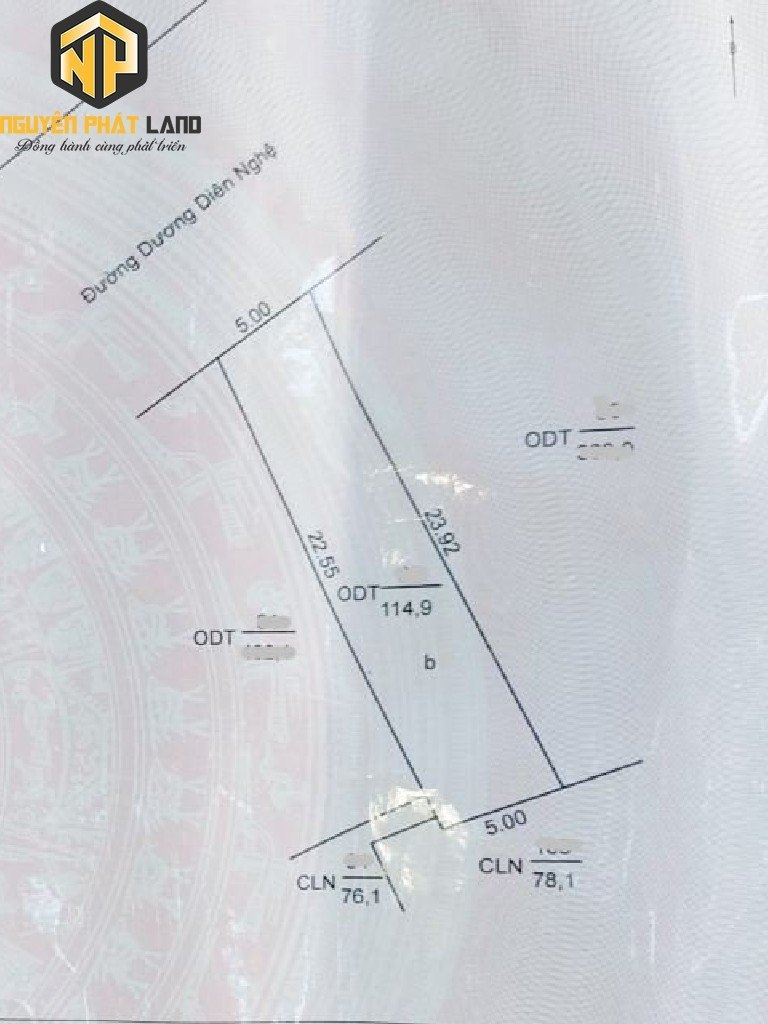 * Diện tích: 5 x 23.8 = 114.9 m2; Hướng: Tây Bắc, không dính cống