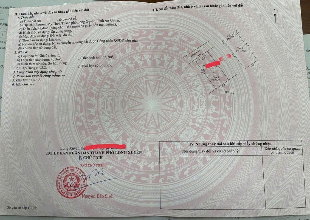 📐 Diện tích: 43.4 m² (4.36 x 9.45). Hướng: Tây Bắc.