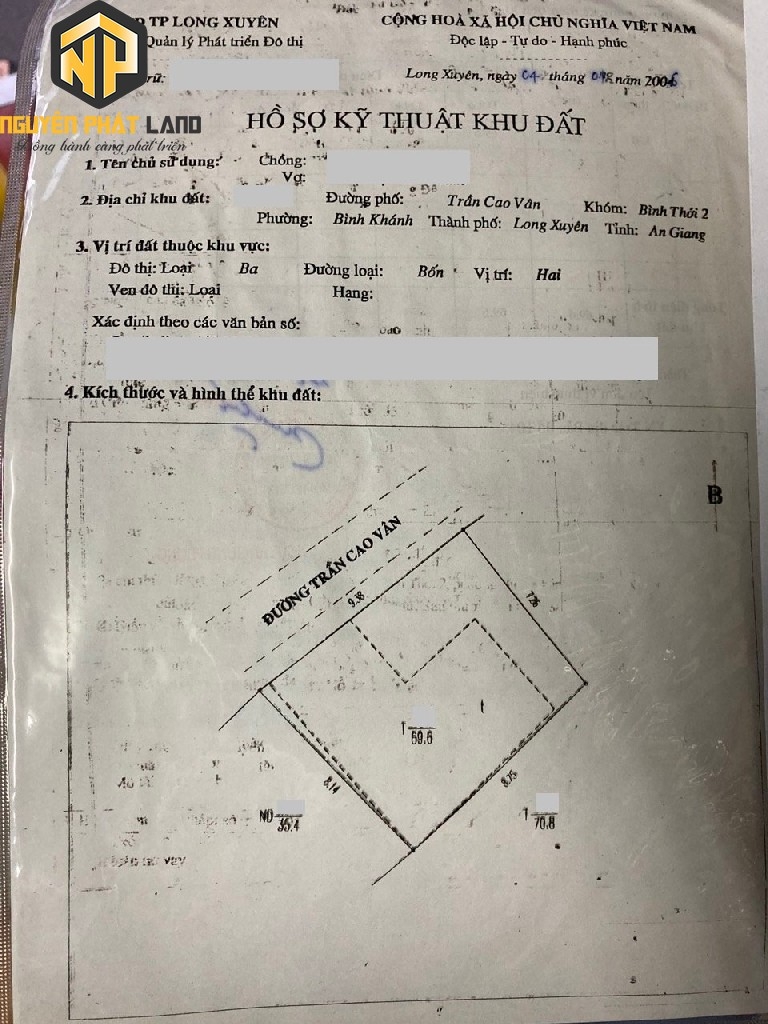 * Vị trí: mặt tiền đường Trần Cao Vân, khu cán bộ an ninh, dân trí cao. Đường nhựa 8m oto tới nhà.